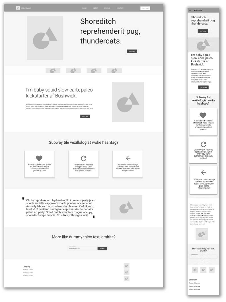 The page design took a couple of twists and turns as it was built out in fidelity and iterated on. There were quite a few sections added to the landing page, making it longer, but allowed for more space to detail Koinstreet’s offerings. This was essential in providing users just enough information about the product, without overwhelming them.